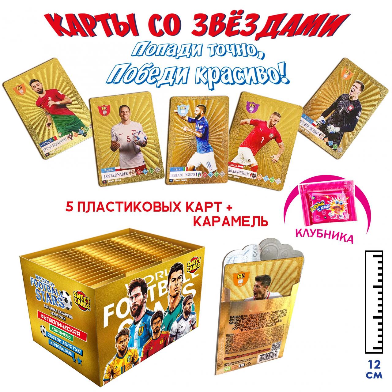 Карамель леденцовая с карточками с изображением персонажей и людей Sweet Candy Cards World football stars (Китай) 1г49,92 руб. за штуку (в упак. 16 шт.) |