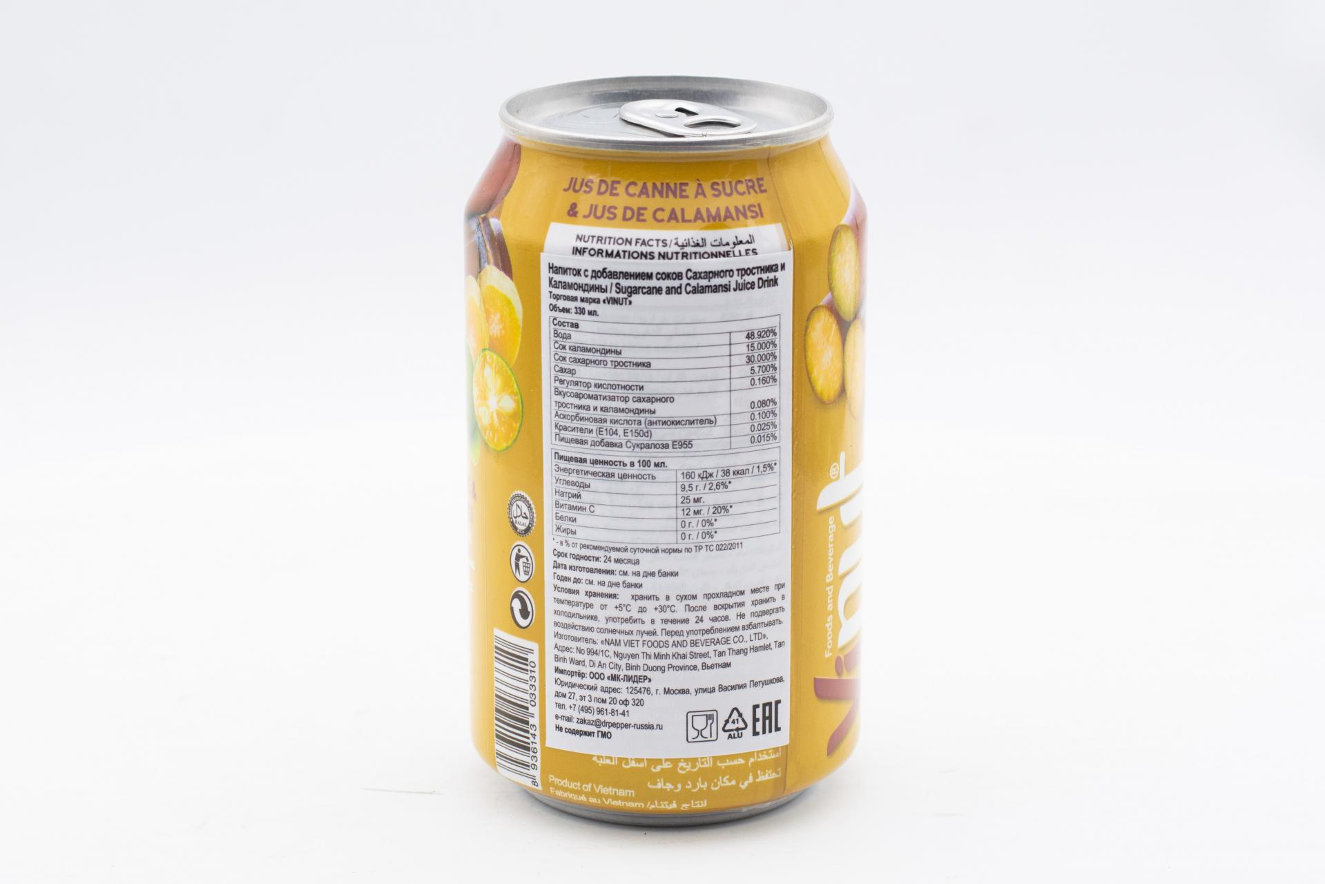 Напиток сокосодержащий Vinut Сахарный тростник и Каламондин 330 мл ж/б0,00 руб. за штуку (в упак. 24 шт.) |