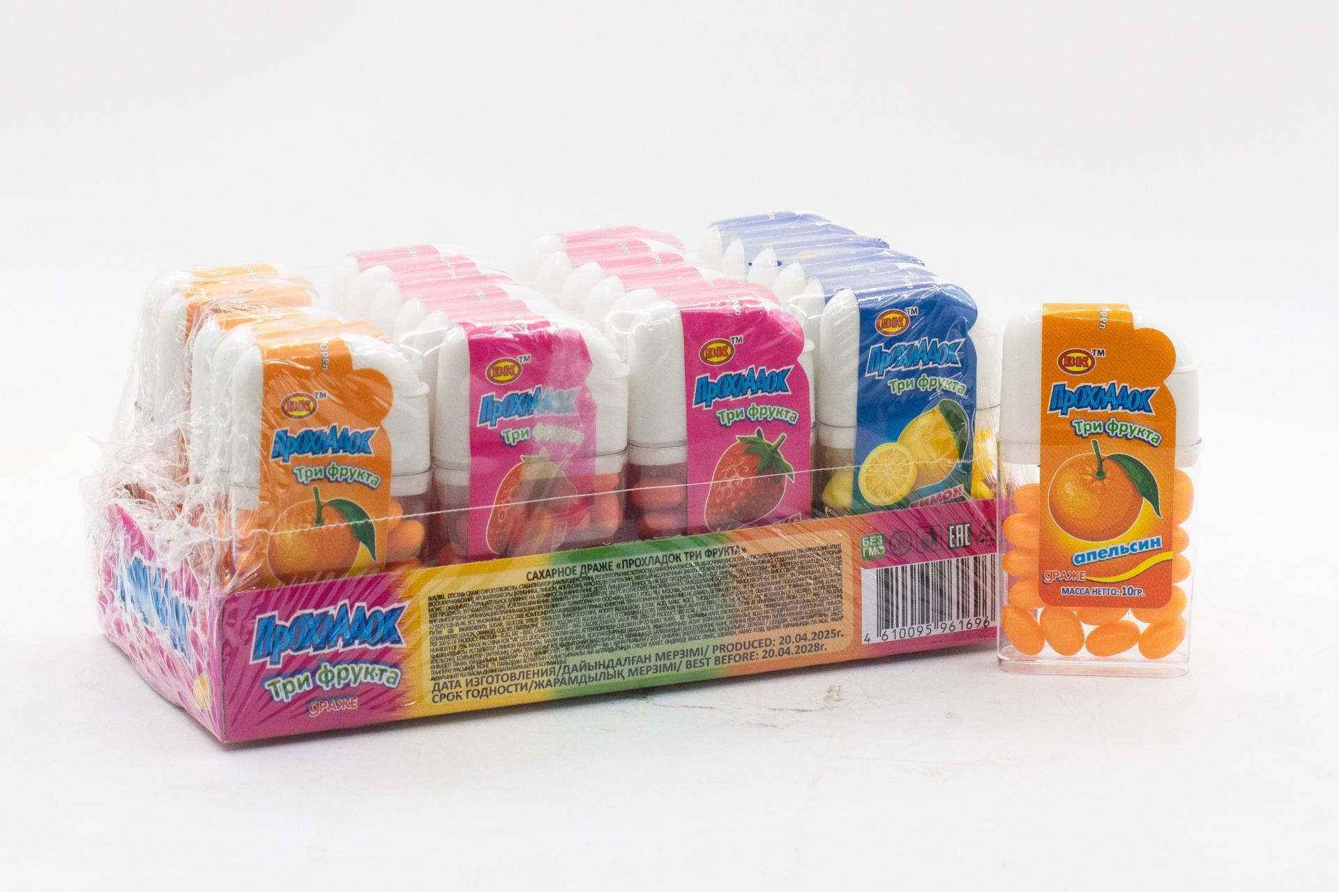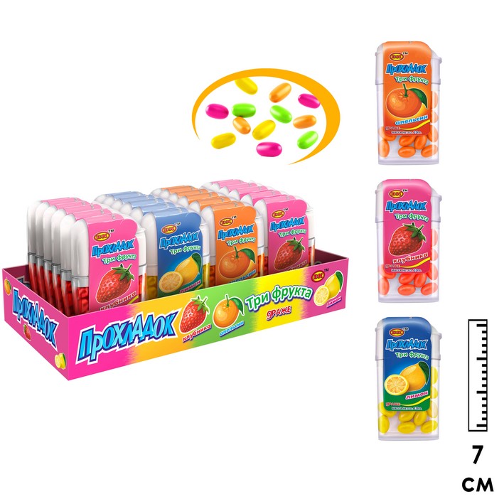 Сахарное драже Прохладок Три фрукта (Китай) 10г7,77 руб. за штуку (в упак. 24 шт.) |