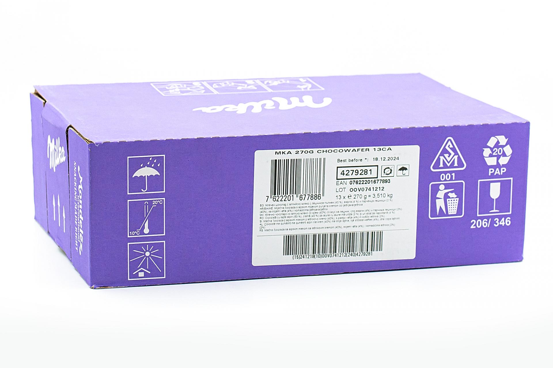 Шоколад молочный Milka Choco Wafer с начинкой из орехового крема, вафельным слоем и карамелизированными кусочками лесного ореха 270 гр376,80 руб. за штуку (в упак. 13 шт.) |